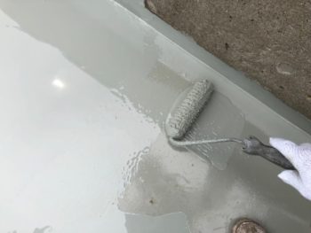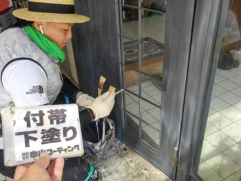 WORKS 徳島県 外壁コンクリート打ちっ放し再現工法 南佐古 施工前を見る 施工中を見る 施工後を見る 施工事例データ 施工前はこちら 施工前正面全体のお写真です。打ちっぱなしの家ということもあり、壁面がかなり汚れています。 施工前側面からのお写真です。元からなのかは、分かりませんが、壁面に2本帯のようなものが走っていました。 施工前屋根のお写真です。外壁同様かなり汚れていました。 施工前壁面のお写真です。コンクリート壁はかなり汚れやすい壁なので、定期的に洗浄をしないと、すぐに汚れてしまします。 施工前屋上のお写真です。雨や空気中に含まれる汚れが付着して、一般家庭の土間と同等の汚れ具合でした。 施工前ベランダサッシ周りのお写真です。角に苔やカビが発生して黒くなっていました。 雨漏りが起きていた箇所のお写真です。ひとまずコーキングを使って水の浸入を防ぎます。 中山コーティングによる施工中の様子 高圧洗浄 屋根の洗浄を行いました。雨樋の中もしっかりと洗い流していきます。 外壁の洗浄を行いました。高圧の水流で汚れを根こそぎ落としていきます。 屋上の洗浄を行いました。高圧洗浄で汚れを落とすと、素地の色が顔を出しました。 ベランダから屋上へ続く階段も一段一段丁寧に洗っていきました。 コーキング工事 塗料も密着を良くするためにプライマーを塗布しました。 コーキングの充填を行いました。 ガラス窓の面台部分のコーキングを行いました。 ルーバー窓面台のコーキングを行いました。 壁面と立ち上がり目地のコーキングを行いました。 縦目地もしっかりとコーキングを行いました。 笠木目地のコーキングを行いました。 【外壁コンクリート打ちっ放し再現工法】 外壁下塗りを行いました。壁面がよく塗料を吸うのでたっぷり塗装していきます。 外壁の下塗り2回目を行いました。壁面が塗料を吸い込まなくなるまで、塗料を塗布します。 外壁の下塗り3回目を行いました。外壁が吸い込まなくなるまで塗布したことで、壁面が飴色になりました。 外壁の中塗りを行いました。 中塗り後のお写真です。 外壁の上塗りを行いました。下塗りをたっぷり塗装したことで、きれいに塗装出来ました。 社外秘のコンクリート打ち放し工法で模様を付け光触媒を塗布し完了です。 細部塗装 玄関ドアのケレンを行いました。 玄関ドアの行いました。 雨樋のケレンを行いました。 雨樋の上塗りを行いました。 室外機カバーのケレンを行いました。 室外機カバーの下塗りを行いました。 室外機カバーの上塗りを行いました。 ベランダの下塗りを行いました。 ベランダの防水塗装中塗りを行いました。 立上り部分もしっかり塗装を行います。 ベランダの防水塗装上塗りを行いました。 階段部分もしっかり塗装を行いました。 板金工事 屋根にルーフィングを貼りました。このシートが雨の浸入を防いで屋根を守ってくれます。 ルーフィングを貼り終えた後のお写真です。 ガルバリウム鋼板の貼り付けを行いました。 ガルバリウム鋼板を貼り終えた後のお写真です。ガルバリウムを貼ることにより、耐久性、対候性が格段に上がります。 雨漏りしていた窓に胴縁を取り付けました。 雨漏り箇所に野地板を貼りました。 野地板の上からガルバリウム鋼板を貼って密閉しました。 施工が完了しました 施工後全体のお写真です。施工前の黒くなっていた壁面が嘘のような白さに戻りました。 施工後屋根のお写真です。以前の屋根に比べ耐久性と対候性が上がりました。 施工後外壁のお写真です。徳島唯一のコンクリート打ちっぱなし塗装で塗装を行いました。 施工後屋上のお写真です。打ちっぱなしの床に防水を行ったので、雨が染み込んでいく心配はなくなりました。 施工後ベランダのお写真です。外壁とベランダを塗装しただけでここまで明るくなりました。 施工後玄関ドアのお写真です。劣化が進み塗膜が剥がれて始めていたドアが、外壁によく合った今風のドアになりました。 雨漏りが起こっていた窓のお写真です。、窓を板金で覆ったのでもう雨漏りの心配はありません。 前の記事 次の記事 一覧へ戻る