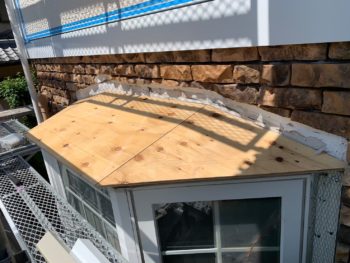 | ご提案内容 | まずは雨漏り調査を行い浸入経路/入り口を見つけました。外壁は塗れる状態ではなかった為、アルミサイディング YKK製のアルカベールを張り、既存屋根にはコロニアルが葺かれており将来的に塗るより貼った方がサイクルコスト的にも良いのでカバー工法をお選びくださりました。 既存窓枠の木部は朽ち果てており今回は木を新しくするのではなく耐久性重視でモルタル造形に木部を作りエイジング塗装を施しました。 |