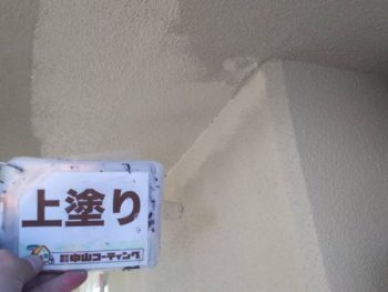 WORKS 徳島市 屋根アスファルトシングル葺き替え・外壁マット塗装 施工前を見る 施工中を見る 施工後を見る 施工事例データ 施工前はこちら 施工前正面のお写真です。表面に汚れが付着してかなり暗い印象を受けます。 施工前裏面のお写真です。正面同様壁面がかなり汚れていました。 施工前屋根のお写真です。長年雨風に晒されたことでかなり劣化が進んでおり、施主様と話し合った結果今回、張り替えることになりました。 施工前外壁のお写真です。紫外線による劣化でチョーキングが発生していました。 外壁アップのお写真です。壁面の凹凸の間に汚れが溜まっているのがわかります。 施工前雨樋のお写真です。劣化が進み表面の塗膜が剥がれ始めていました。 施工前軒天井のお写真です。中の鉄骨が錆びて膨張を起こし、コンクリートが割れて浮いていました。 施工前窓のお写真です。窓枠が錆びてその錆が流れて壁面を汚していました。 施工前塀のお写真です。長年雨風に晒されて黒く汚れていました。 施工前車庫天井のお写真です。 施工屋根排水部分のお写真です。表面の防水シートが劣化してかなり黒くなっていました。 中山コーティングによる施工中の様子 高圧洗浄 屋根の洗浄を行いました。表面に発生した苔を根こそぎ洗い流します。 陸屋根の洗浄を行いました。長年雨風に晒されてかなり汚れていました。 外壁の洗浄を行いました。壁面に発生したチョーキングを丁寧に洗い流します。 軒天井の洗浄を行いました。 塀の洗浄を行いました。 コーキング工事 既存のコーキングを撤去しました。 コーキングが他の場所に付着するのを防ぐため養生を行いました。 コーキングの密着を良くするためプライマーをしっかり塗布します。 コーキングの充填を行いました。 ヘラで表面を整えます。 同様の工程ですべての目地のコーキングを打ち替えました。 屋根張替え 既存のスレート瓦を撤去しました。 撤去後のお写真です。中のルーフィングも劣化してかなり脆くなっていました。 屋根のクラック箇所を補修しました。 ルーフィングを剥がし終わった後のお写真です。 屋根に新しいルーフィングを貼りました。 屋根に新しいスレート瓦を貼りました。立ち上がり部分にもしっかり貼っていきます。 張り替え後のお写真です。 下屋根も同様の工程で張替えを行いました。 クラック補修 陸屋根立ち上がり部分のクラックにUカットを行いました。 壁面もこの後モルタル補修を行うので少し大げさなくらい削ります。 軒天井の壁面同様削っていきます。 陸屋根立ち上がり部分のモルタル補修を行いました。しっかりUカットを行いったのできれいに補修できました。 壁面のモルタル補修を行いました。 軒天井のモルタル補修を行いました。 外壁の下地処理を行いました。壁面に塗料を吹き付けてできる限り周りの状態に近づけます。 軒天井も同様に塗料を吹き付けて周りの状態に近づけました。 外壁塗装 外壁の下塗りを行いました。下塗りには塗料の密着を良くする効果があります。 下塗り後のお写真です。下塗りにはもう一つ、細かい傷を埋めて表面を平らにする効果もあります。 外壁の中塗りを行いました。 中塗り後のお写真です。暖かみのある落ち着いた色合いになりました。 外壁の上塗りを行いました。下塗りをしっかり行ったことでとても綺麗に塗装できました。 上塗り後のお写真です。下塗りをしっかりと塗装したことでとても綺麗な壁面に仕上がりました。 鉢巻部分の下塗りを行いました。 鉢巻部分の中塗りを行いました。 細部塗装 軒天井の塗装を行いました。 シャッターボックスのケレンを行いました。 シャッターボックスの錆止めを行いました。 シャッターボックスの中塗りを行いました。 シャッターボックスの上塗りを行いました。 シャッターの錆止めを行いました。 シャッターの上塗りを行いました。 窓枠のケレンを行いました。 窓枠の中塗りを行いました。 窓枠の上塗り行いました。 雨樋のケレンを行ました。 雨樋の下塗りを行いました。 雨樋の上塗りを行いました。 柵のケレンを行いました。 柵の錆止めを行いました。 柵の中塗りを行いました。 柵の上塗りを行いました。 電飾の錆止めを行いました。 電飾の上塗りを行いました。 立ち上がりの中塗りを行いました。 立ち上がりの上塗りを行いました。 玄関ドアのケレンを行いました。 玄関ドアの下塗りを行いました。 玄関ドアの上塗りを行いました。 ベランダの下塗りを行いました。 ベランダのウレタン塗装1層目を行いました。 ベランダのウレタン塗装2層目を行いました。 ベランダのトップコート塗装を行いました。 使用材料 外壁下地処理で使用した材料です。 外壁の下塗りで使用した材料です。 外壁上塗りで使用した材料です。スズカファインのビーズコートF(22-75D)を使用しました。 細部塗装で使用した材料です。 錆止めで使用した材料です。 施工が完了しました 施工後正面のお写真です。施工