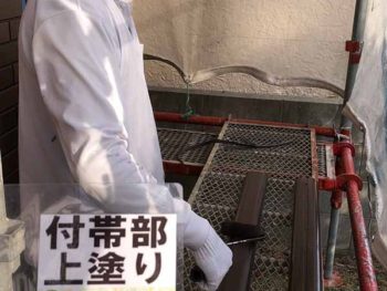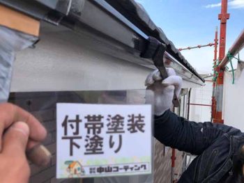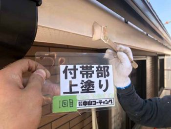 | 施工箇所 | タイル調サイディング 目地 サッシ周り 軒天井 破風 鼻隠し 雨樋 土台水切り シャッターBOX |