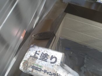 中塗りを行いました。使用材料は関西ペイントの「ダイナミックルーフ」お色はアイビーグリーンです。