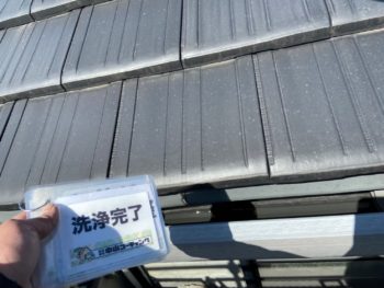 塗装の有無にかかわらず、汚れている箇所の洗浄を行いました。ベランダの床部分や雨樋の中には結構汚れが溜まっていることも多いので念入に行います。