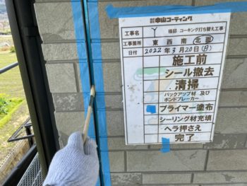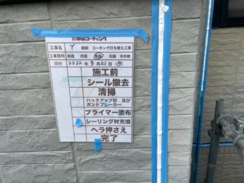こちらのお家のようにセキスイハウスやダイワハウスで建てられたお家では目地・窓周り部分にシーリングではなく「ガスケット」というものが入っているケースも多いです。そんなに傷んでいない場合は特殊なプライマーを塗布することでそのまま塗装に移れるのですが、こちらでは傷んでいたので全て撤去してシーリング打設を行わせていただきました。