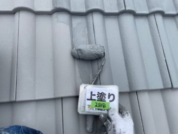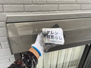 外壁にも屋根と同様にGAINAを塗布しております。実はGAINAは非常に塗りにくい塗料なので未経験者はもちろんの事、経験者でも塗るのにはかなり気をつかいます。サイディングボードのように凸凹している部分に塗装を行うには慎重に確認しながら均等に塗布する技術が必要なのです。