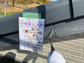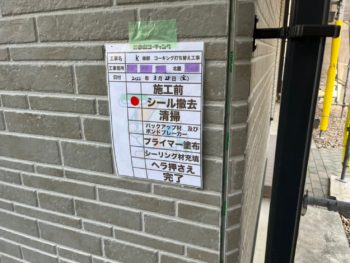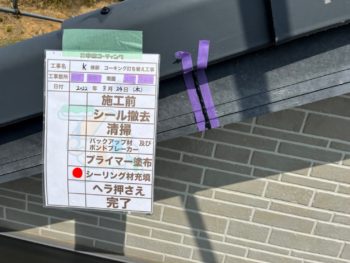 施工前の状況としては壁面のサイディングボード自体は傷みが激しいほどではございませんが縦目地や窓周りのシーリングが傷んでおり破断しかかっておりました。