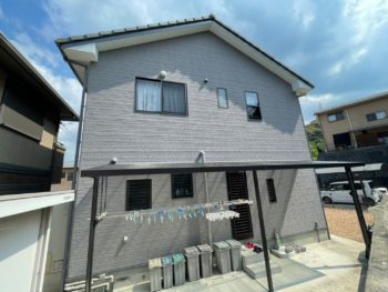 施工が完了しました。屋根、外壁にはGAINAで塗装を行っているので暑さ、寒さ対策はバッチリです。傷んでいたシーリング部分も打ち替えて弾力を取り戻しました。その他雨樋や水切り等の付帯部は艶が輝いており、しっかりと撥水してくれています。