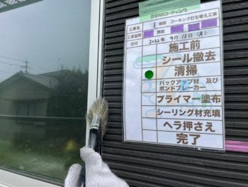 | お客様のご要望 | シーリングが劣化し、青い部分が見えてきて気になりだした、 時期的にもそろそろ塗替えやイメージチェンジしたい、 ということでお問合せ頂きました。 |