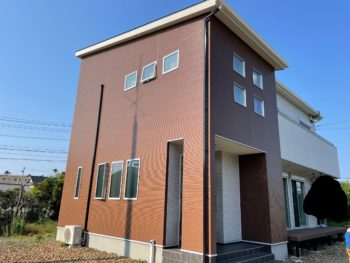 新築時モノトーンある色合いから外壁塗装後、ホワイトとブラウン色で調和がとれナチュラルモダンなお家に。
