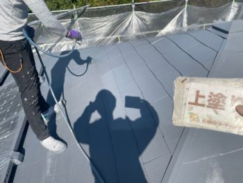 上塗りを塗布しました。ムラなく塗装し、耐久力もup!断熱機能で夏は涼しく、冬は暖かくなります。