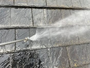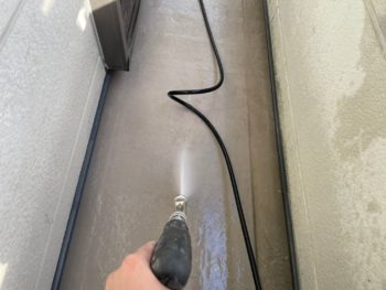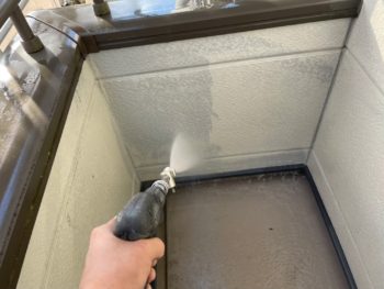建物全体の高圧洗浄を行いました。コケや藻、劣化した旧塗膜などをしっかり取り除き塗料の付着が良くなるように丁寧に洗い上げます。
