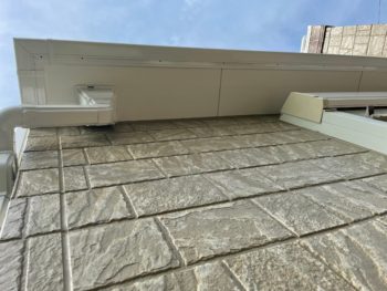 屋根は表面塗膜が劣化しており、所々瓦にひび割れが生じています。