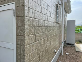 ベタ塗りにするのは抵抗があり、出来れば今の状態のまま維持するか外壁目地と表面を塗り分けたい。 |