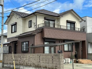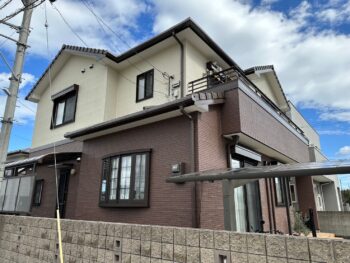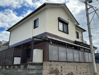 | お客様のご要望 | 築年数が20年程経ち、外壁やコーキングの傷みを訪問販売から注意されて気になってきた。 訪問販売は危ないとネットでも見るし、周りからも聞くので信用信頼できる会社に任せたい。 家の雰囲気をあまり大きくは変えたくない。 長持ちする塗料がいいけどベタ塗りは嫌だというご要望でした。 |