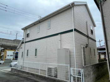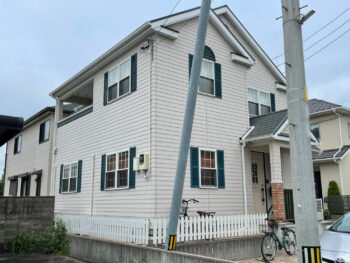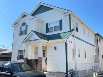 | お客様のご要望 | コーキングの破断や外壁がチョーキングし時期とも思いました。 昔から足場をよく見かけ変な安売りもしていないので塗り替えるなら中山コーティングさんに!と決めていたので他社は取らず一択で決めます。 元々のコンセプトが赤毛のアン「グリーンゲイブル風」で新築時にできなかった色合いにしたいです。 他社も見積もりはとりましたが20年・30年もつと根拠のない事を言われ不信でしかありませんでした。 |
