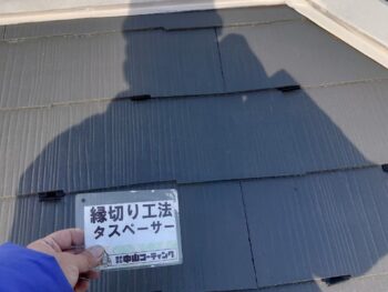 二回目の塗装工事という事で前回、屋根塗装時に縁切りが行われてなく水が抜けておりませんでした。今回は湿気防止・結露防止・水漏れ防止でタスペーサー挿入作業を実施し塗装を行いました。