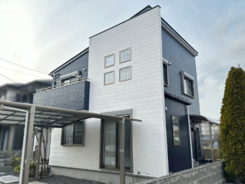 徳島県徳島市 ツートンのお家「濃紺色とオフホワイトの組み合わせ決め手は〇〇〇」