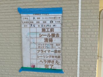 目地シールと同様の手順でサッシ周りのシールも打ち替えを行います。