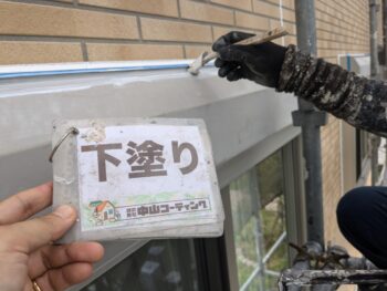 中塗り前に、縁切り材のタスペーサーを挿入していきます。
