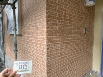 タイル調の外壁が色あせており、ベタ塗りではなく意匠性のある塗装をしたいなと考えておりました。 |