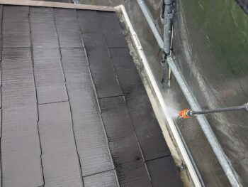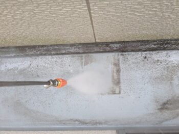 お家全体の汚れや旧塗膜を高圧洗浄で綺麗に洗い流していきます。