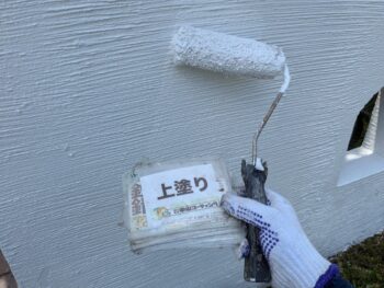 WB多彩仕上の最後にクリアコーティングを行いました。