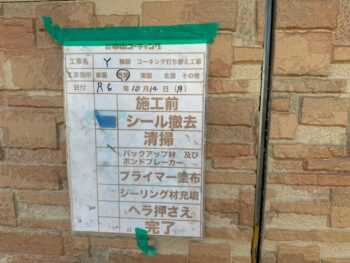 サッシ周りのコーキングも硬化しており、防水機能が低下している状態です。