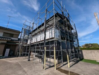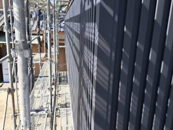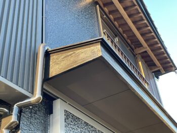 外壁塗装「限界色の色番号N-10」ガルバリウム鋼板と色合わせで重厚感ある住宅に「ブロンズサッシとばっちり」徳島県阿南市
