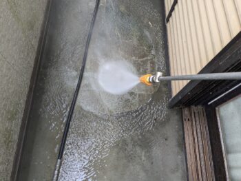 既存の旧塗膜やカビ、コケなどの汚れを綺麗に洗い流します。