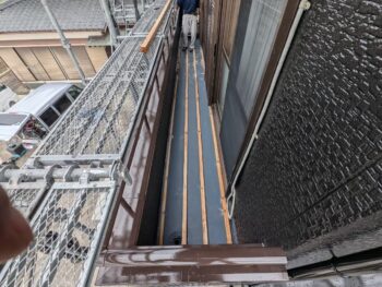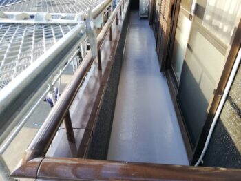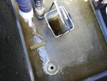 既存のベランダ防水は傾斜が悪く、水が溜まっている状態でした。下地を作り、新しく防水層を一から塗装し、水が流れるよう改善しました。