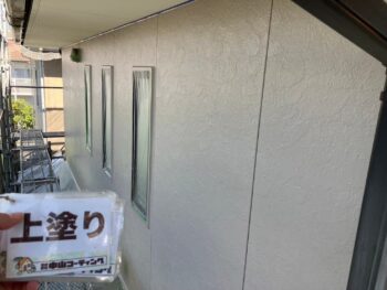 磁器タイルのひび割れやや浮きが気になる。とのお問い合わせありがとうございました。磁器タイルの反れや浮きがでてくる要因としてタイル裏の下地に水がまわって起こります。タイルは一生触らなくていいと思われがちですが窓回りのコーキングやモルタルの劣化・ひび割れから雨水の浸入があげられます。磁器タイル裏側には一般的にALC壁面やさんとうばん(910mm×3030mm)が使用されております。どちらも水が天敵となり表面劣化により下地が反れてきます。今回は下地やモルタル箇所含め念入りに施工を行いました。