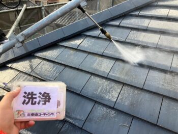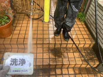 既存の旧塗膜やカビ、コケなどの汚れを綺麗に洗い流しました。