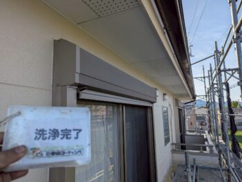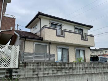 「外壁の柄を残したい」というご希望をお伺いし、まずはクリヤー塗装が可能かどうか診断を行いました。その結果、1階部分の意匠性サイディングにはクリヤー塗装が適応できましたので、美しいデザインをそのまま活かす施工を実施しました。一方で、2階部分についてはクリヤー塗装を行うと将来的に白濁現象が起こる可能性があるため、単色仕上げをご提案し、丁寧に塗り上げました。外壁全体のバランスを考えながら、お住まいに合った最適な施工を心掛けています。施工後には「職人さんの対応も良かった」とのお言葉をいただき、大変嬉しく思います。これからも徳島で安心して任せていただける外壁塗装専門店として、品質と丁寧なサービスを大切にしてまいります。