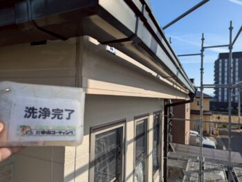 既存の旧塗膜やカビ、コケなどの汚れを綺麗に洗い流しました。