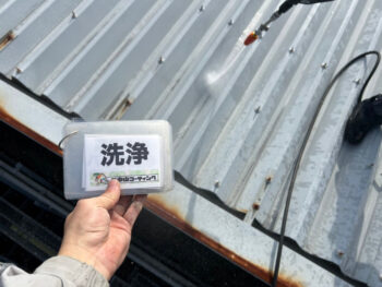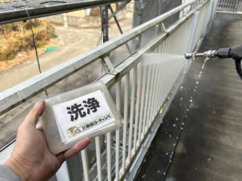 既存の旧塗膜やカビ、コケなどの汚れを綺麗に洗い流しました。